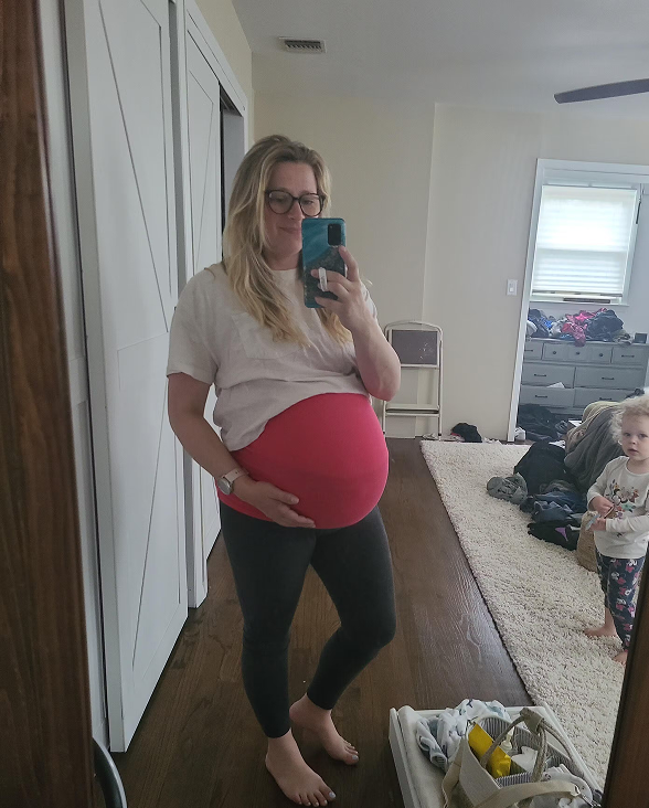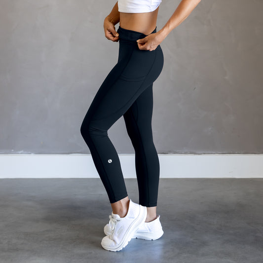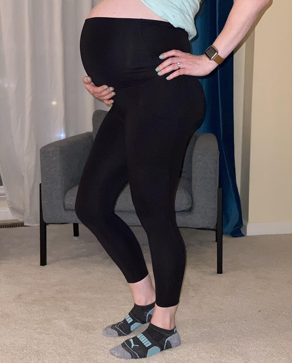 These leggings have been my go-to the whole pregnancy. They are the only ones I have that don't move or fall down. I have stayed active throughout my pregnancy, and these stay put with anything from HIIT to yoga to playing with my toddlers. Love the fabric and the pockets.